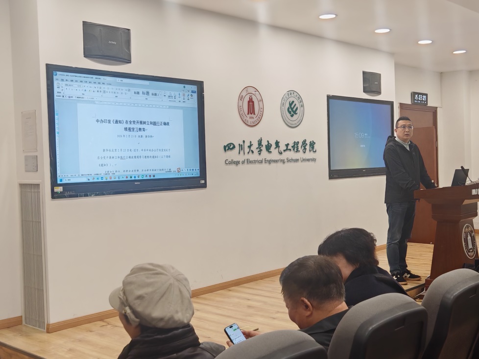随后,党支部书记陈实就支部开展树立和践行正确政绩观学习教育作出全面部署。一是深化理论武装,通过“三会一课”、主题党日、专题研讨、读书交流等多种形式,开展分层分类学习,发挥“领头雁”的示范引领作用,带动全体党员深学细悟;二是坚持问题导向,聚焦政绩观偏差突出问题,组织党员结合岗位实际深入查摆、精准整改,建立整改台账,做到边学习、边对照、边检视、边整改;三是推动学用结合,将学习教育与电气工程专业建设、科研攻关、学生培养、志愿服务等中心工作深度融合,把学习成效转化为推动系部高质量发展的实际行动;四是强化宣传引导,充分利用成人导航