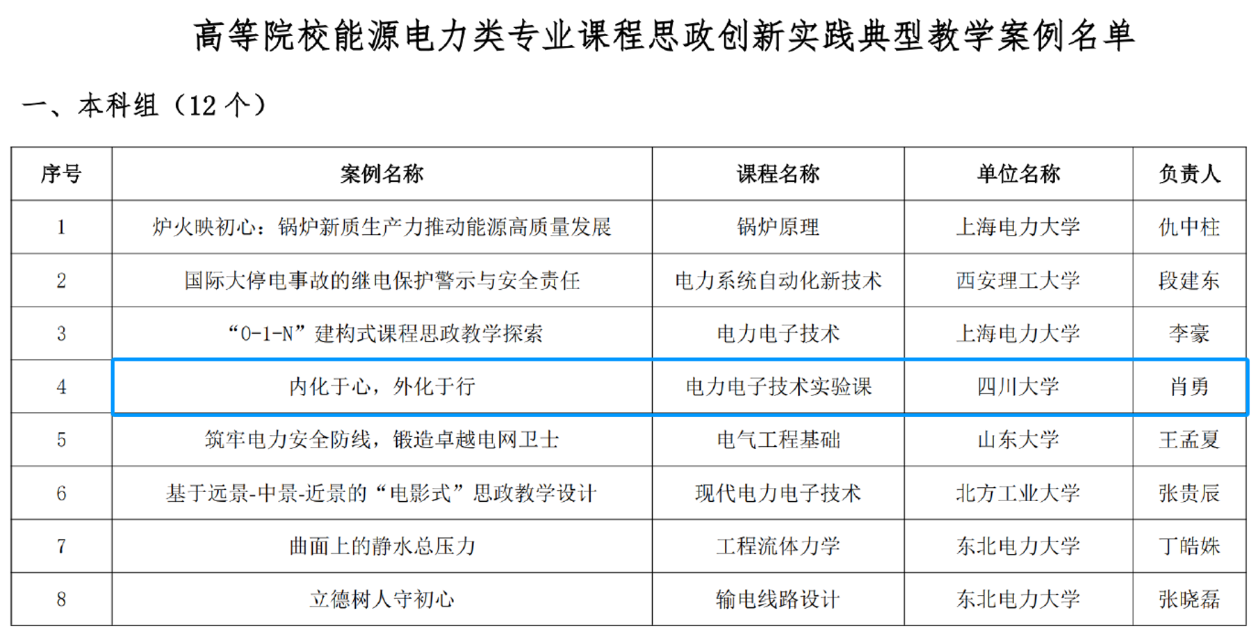 肖勇老师负责讲授的《电力电子技术实验课》,从全国38所高校申报的能源电力类专业课程思政创新实践案例中脱颖而出,被中国电力教育协会认定为能源电力类专业课程思政创新实践典型教学案例。这是成人导航