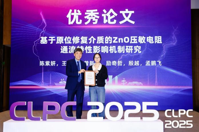 陈紫妍以“基于原位修复介质的ZnO压敏电阻通流特性影响机制研究”为主题进行汇报,研究利用基于Voronoi网络的压敏电阻多物理场耦合特性精细化数值计算模拟,在ZnO压敏电阻边缘区域涂覆原位修复介质并进行二次烧结有效填充侧面开放气孔缺陷,提升压敏电阻内部结构均匀性,改善电阻片内部的温度及热应力分布,提升电阻片的能量吸收能力。该研究荣获会议优秀论文奖。