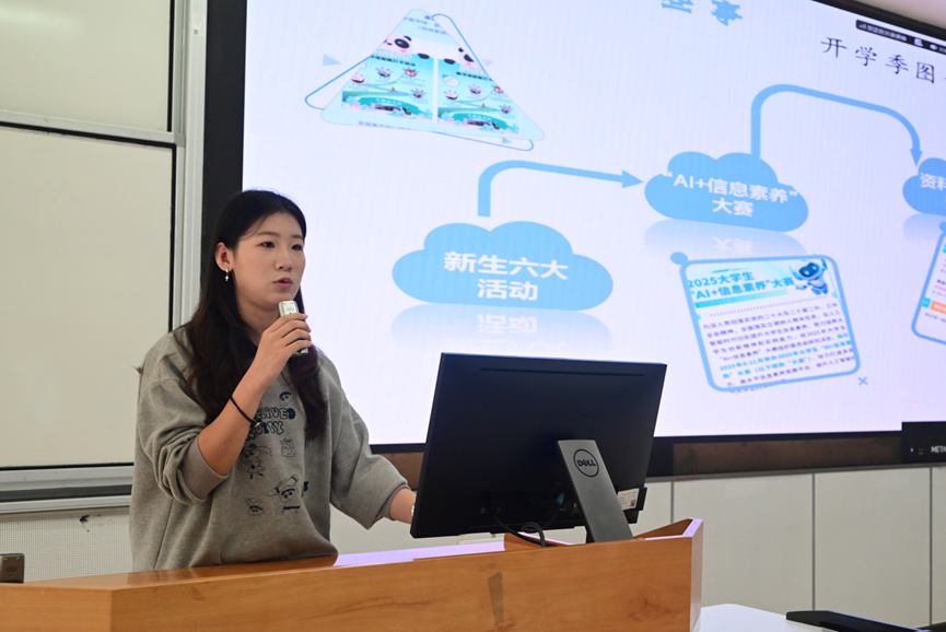 团委学生会主席团成员田怡楠、马镜茹向新生系统介绍了第二课堂与社会实践的相关内容。她们以2025年暑期成人导航