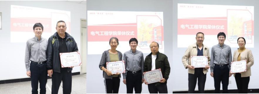 和肖先勇院长向各位荣休教职工表示感谢和敬意,感谢各位荣休老师当年选择了电气大家庭,感谢他们为成人导航